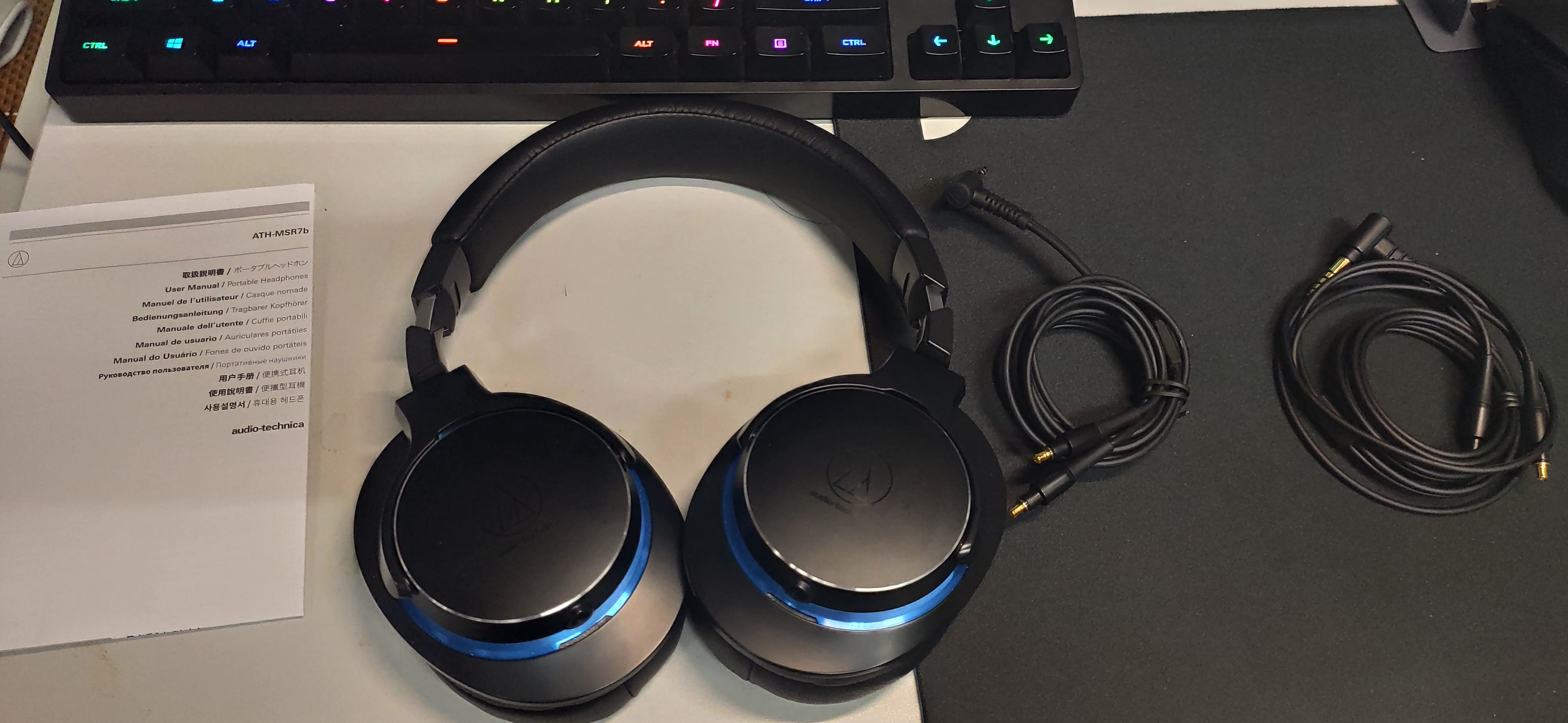 耳机本体头梁用的人造皮(应该是吧)缝线什么的都很好,戴上很舒服,之前的msr7貌似会出现带久了氧化掉皮,这种现象貌似还没出现在msr7b上,应该是工艺改善了。