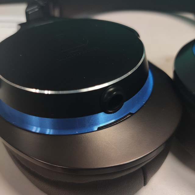 耳机头的工艺没话说,铁三角到这个价位的工艺都不会差的,金属,不过有个点要说的是logo和字的印刷用的是黑色的染料,这……真的很难看清楚logo和型号,上面的图大家也可以看出来这个……应该是铁三角故意的。这样显得陌生人妻也低调了不少,颇有神秘感。