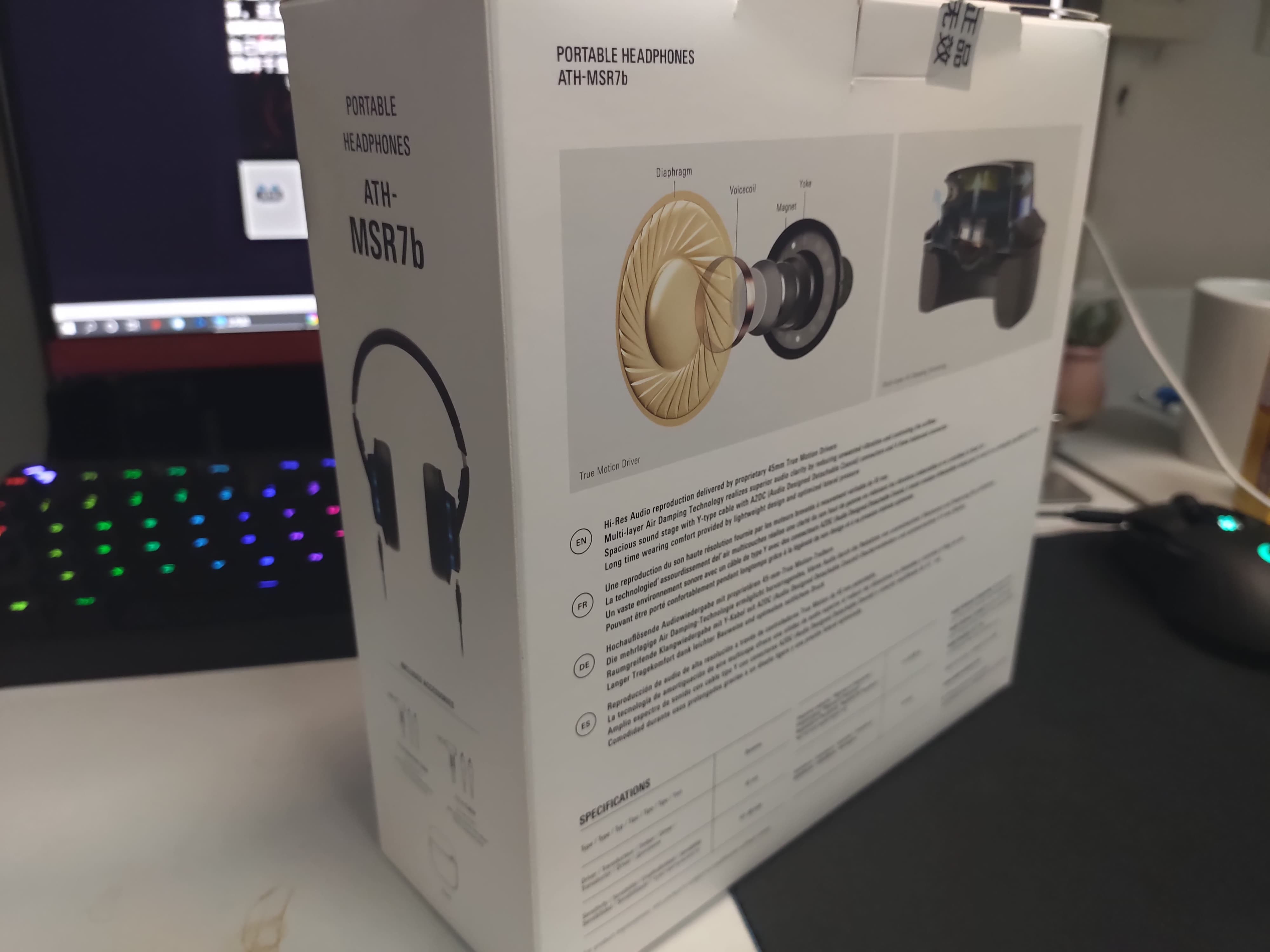 从外观上看,msr7貌似要比msr7b更小一圈,两者很容易辨认,msr7的logo非常明显。个人认为msr7b更能给人一种大耳的感觉,逼格一下就上来了。